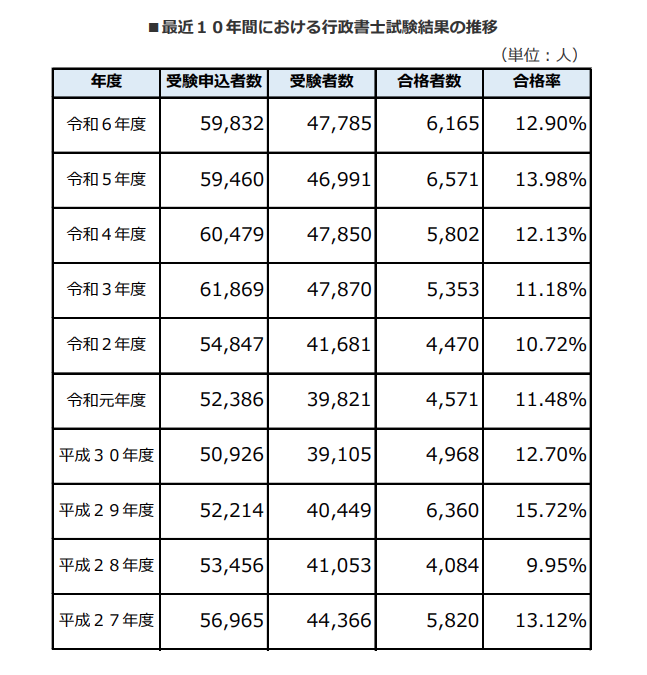 参照:一般財団法人 行政書士試験研究センター「最近10年間における行政書士試験結果の推移」