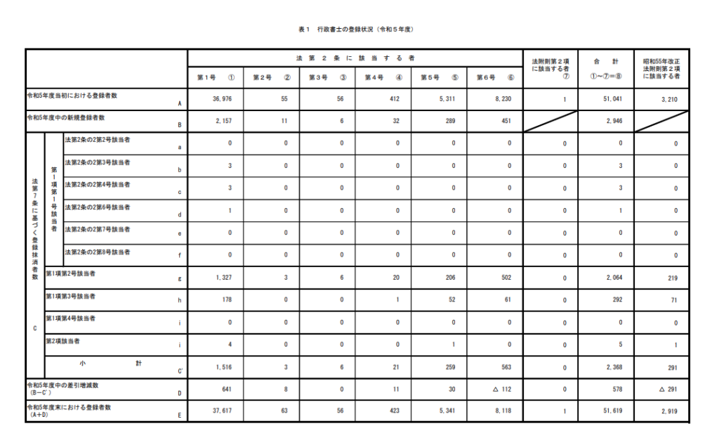 参照:総務省「行政書士の登録状況(令和5年度)」