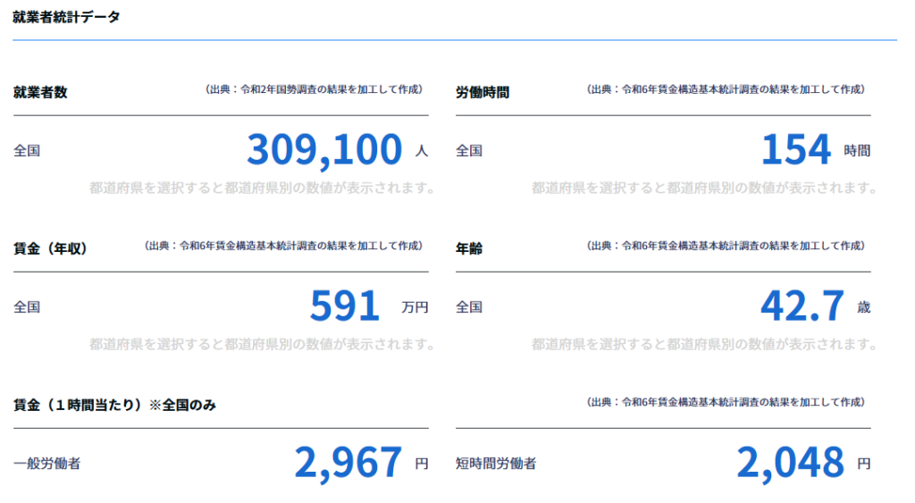 厚生労働省の統計は行政書士を含む法務・経営等の専門的職業のデータですが、キャリアを考える上で参考になるはすです。